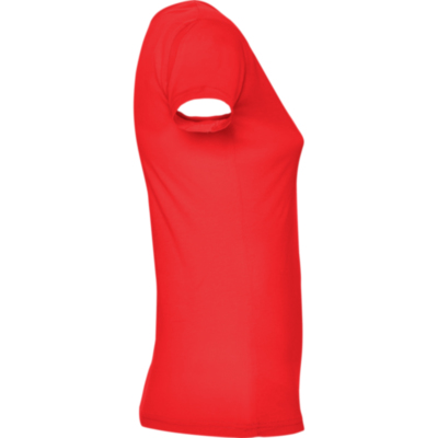 Short-sleeve t-shirt with ribbed crew and wide neckline. Side seams and fitted cut.