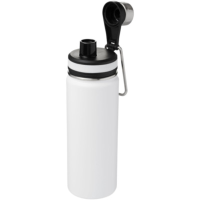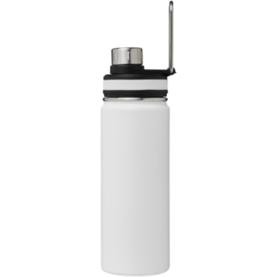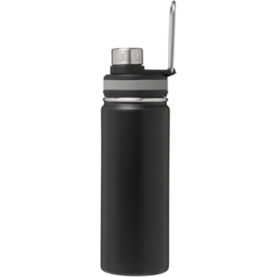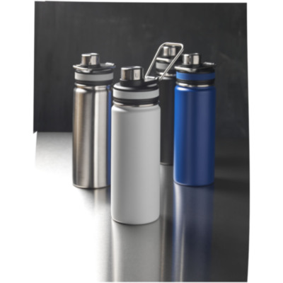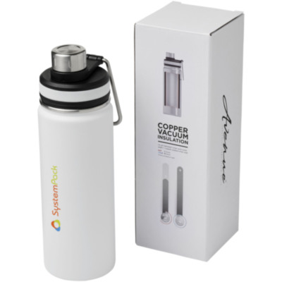 Double-walled stainless steel vacuum construction with copper insulation, which keeps beverages hot for at least 12 hours and cold for 48 hours. The construction also prevents condensation on the outside of the bottle. Features a screw-on top and stainless steel lid with a convenient handle for carrying. Dual opening construction for easy cleaning and filling. Volume capacity is 590 ml. Presented in an Avenue gift box.