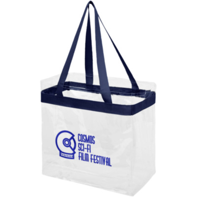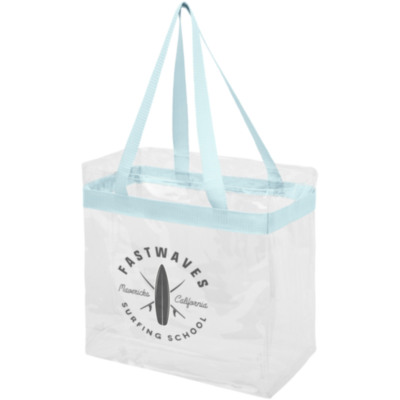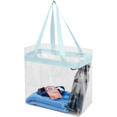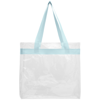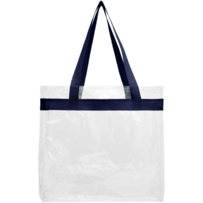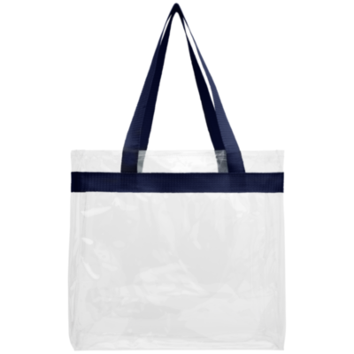 This clear tote is perfect for fans packing their stadium and event day items safely. Also great for work or school safety. Open main compartment with sporty webbing trim and dual carrying handles. Drop down height handles 27 cm. Accessories not included.