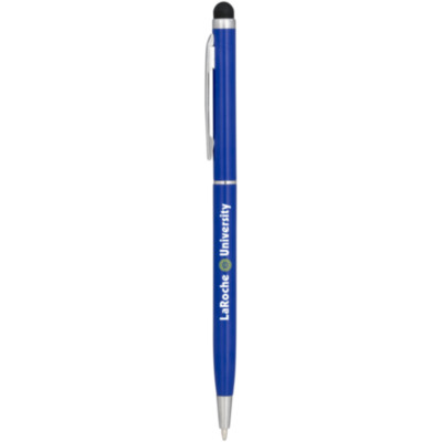 Slim aluminium glazed ballpoint pen with twist mechanism and stylus.