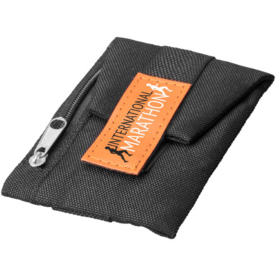 Small but handy wallet that can be attached to shoes or pants. Comes with a zippered pouch, hook & loop closure, with hidden compartments for keeping valuables safe during exercise. Large decoration area on the front side.
