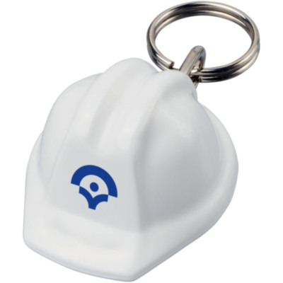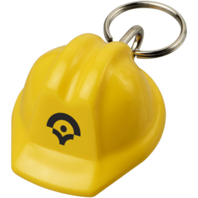 Hard hat shaped keychain with metal split keyring. Ideal for construction or safety organisations.