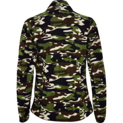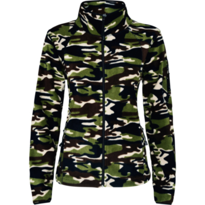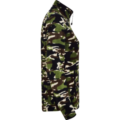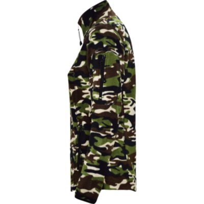 Micro fleece jacket for outdoor sports with high neck and long sleeves, ribbed to contrast. Pocket with contrasting zip on left sleeve and front contrasting zip. Seams on sides and chest. Elbow pads in same fabric.