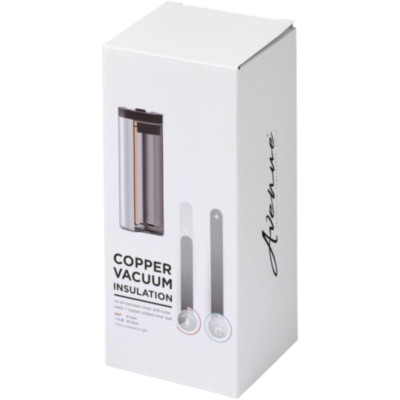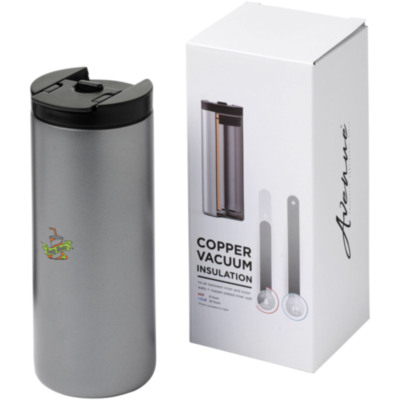 A compact and durable tumbler that is ideal for work or travel. The tumbler has a stainless steel double-wall vacuum construction with copper insulation which means it will keep drinks hot for 8 hours and cold for 24 hours. The lid has a lock-lid function. The construction also prevents condensation on the outside of the tumbler. Volume capacity is 360 ml. Presented in an Avenue gift box.