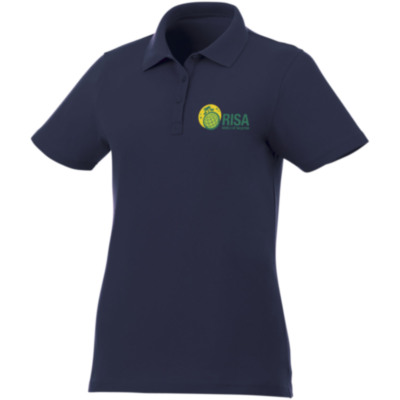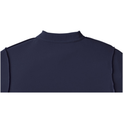 Interior custom branding options. Tearaway-cutaway main label for tagless comfort. Flat knit collar. Flat knit rib cuffs. Three button placket. Double needle stitching detail. Dyed-to-match buttons.