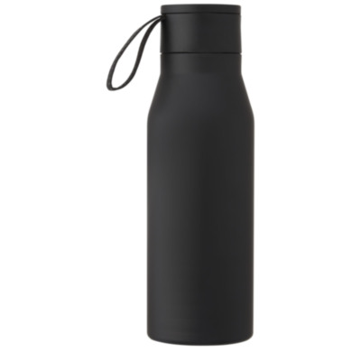 Copper vacuum insulated stainless steel bottle with a classical and elegant design. Features a PU leather strap and detail on the lid. This makes it ideal for laser engraving, which will highlight the logo in a silver colour creating a beautiful visual effect. With its double-walled copper vacuum insulated 18/8 stainless steel, drinks stay hot or cold for several hours. Tested and approved under German Food Safe Legislation (LFGB), and tested for phthalates content according to REACH regulations. Volume capacity is 500 ml. Presented in a recycled cardboard gift box.