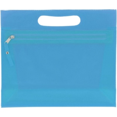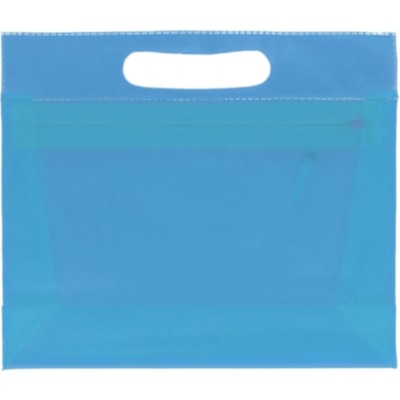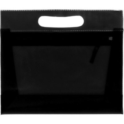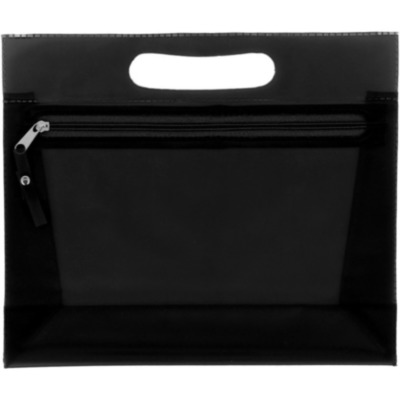 Transparent PVC cosmetic pouch with zipper.