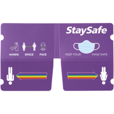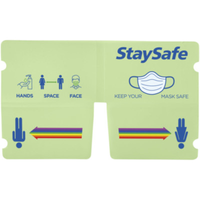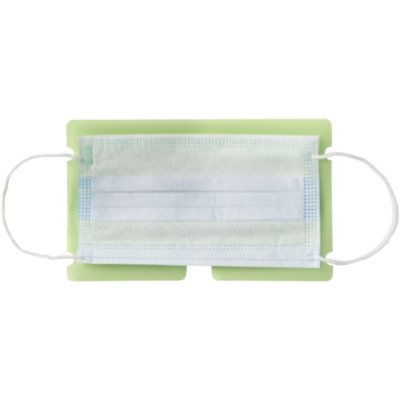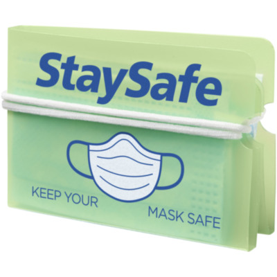Handy fold-up wallet for storing face masks hygienically when not in use. Simply place the mask over the flat PP sheet, follow the fold marks, and then secure the wallet closed with the mask ear straps.