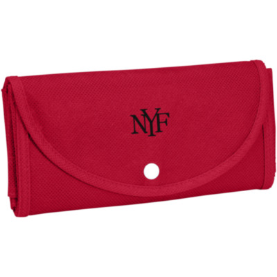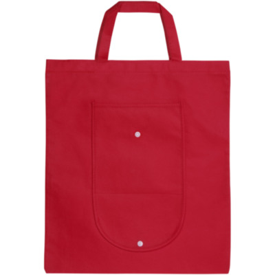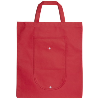 Fold-up Tote bag with an open main compartment and open pocket on the front. Plastic snap button closure. Reusable and a great alternative to plastic bags. Handle drop down height is 14 cm. Size when folded: W20 x H11cm. Item shipped unfolded, packed flat.