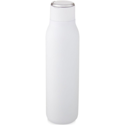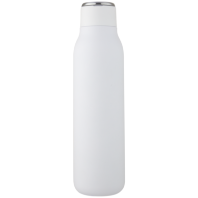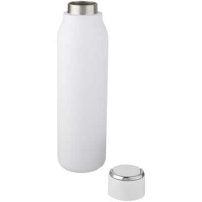 The Marka bottle features stainless steel vacuum construction with copper insulation that keeps drinks hot or cold for several hours. The insulated 18/8 stainless steel construction prevents condensation on the outside of the bottle, and the on-trend powder-spray finish makes it extra durable. It also features a screw-on, spill-resistant lid and a durable, zinc-alloy hand loop. BPA-free, tested and approved under German Food Safe Legislation (LFGB). Tested and approved for phthalates content according to REACH regulations. Fits most standard car cup holders. Volume capacity is 600 ml. Hand wash recommended. Presented in a recycled cardboard gift box.