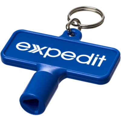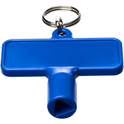 Utility key with keychain for items such as radiators, meterboxes, street poles. The dimensions for the opening is a triangular shape with 8 mm edges.