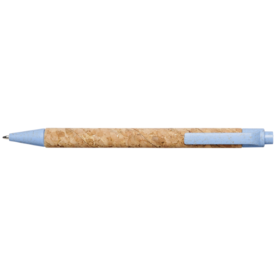 Eco friendly ballpoint pen with click action mechanism, with a barrel made of cork, and wheat straw trims that comes in a variety of colours. Wheat straw is left over stalk after wheat grains are harvested. This reduces the amount of plastic used, providing an Eco friendly alternative. The colour of the cork material may vary.