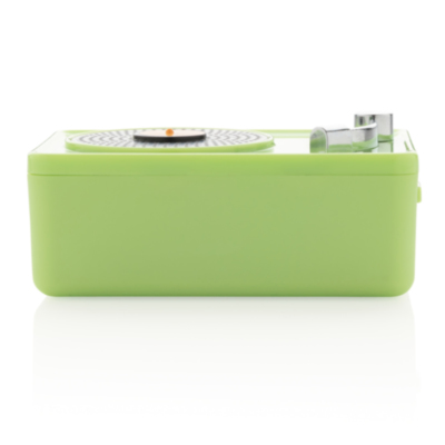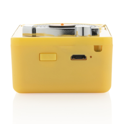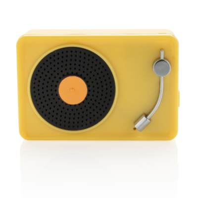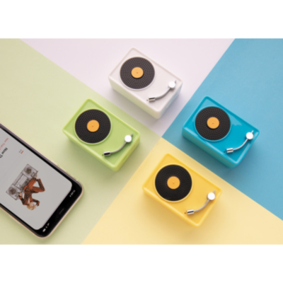 Trendy 3W wireless speaker with vintage look and feel in fashionable colours. Clear sound quality with BT 5.0 for smooth connection to the wireless speaker, up to 10 metres operating distance. The 350 mah battery allows a playing time of up to 3 hours in one charge and re-charging time of 2 hours. Packed in vintage design gift box. ABS material. With Mic to answer calls.