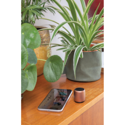 Pocket size 3W wireless speaker with surprisingly powerful sound. Made out of durable aluminium. With 180 mAh battery that allows a playing time up to 3 hours on one single charge and operating distance of 10m using BT5.0. Including PVC free TPE material charging cable.