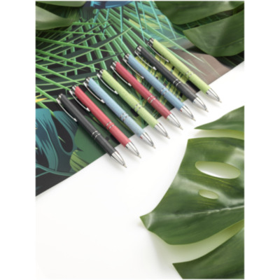 Ballpoint pen with click action mechanism made out of 48% wheat straw. Wheat straw is the left over stalk after wheat grains are harvested, which reduces the amount of plastic used. The ballpoint pen comes in a wide variety of colours, and is finished with striking chrome details. The extensive and popular Moneta range is available in many different styles and finishes.