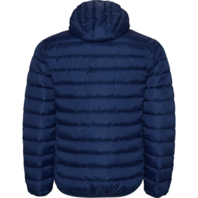 Men's feather touch quilted jacket with fitted hood.