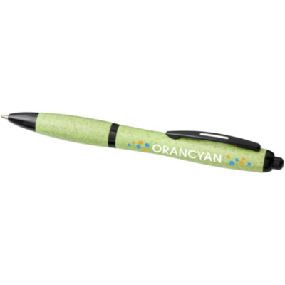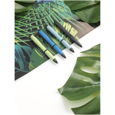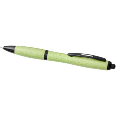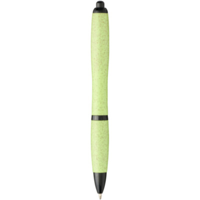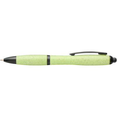 Ballpoint pen with click action mechanism, with barrel made of wheat straw and finished with solid black coloured details. Wheat straw is left over stalk after wheat grains are harvested, which reduces the amount of plastic used.