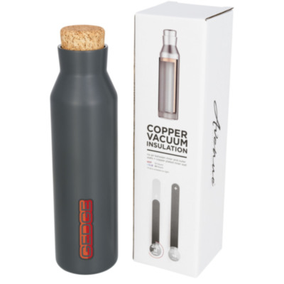 Durable, double-wall stainless steel vacuum construction with copper insulation, which allows your beverage to stay hot for 12 hours and cold for 48 hours. The construction also prevents condensation on the outside of the bottle and the lid is spill resistant. Features innovative screw-on lid with cork-look. Fits most standard car cup holders. Volume capacity is 590ml. Presented in an Avenue gift box.