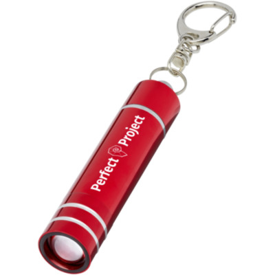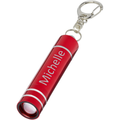 Handy LED keychain light with both torch and light function. The white LED bulb generates 5 lumen and is operated by a push button power switch. Pull out the barrel for additional light. Comes with an metal lobster clip for easy attachment on a bag or set of keys. Batteries included.