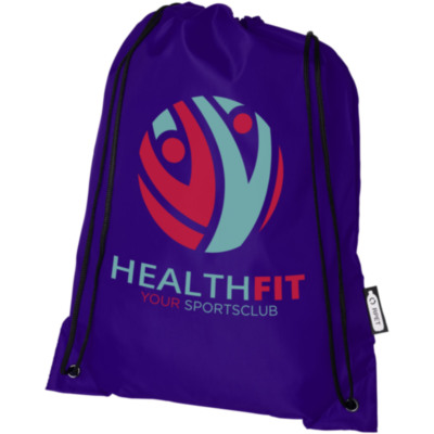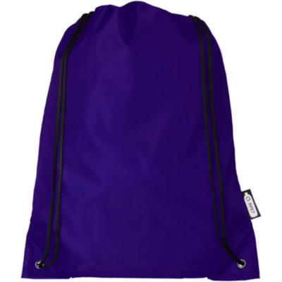 Durable drawstring bag made of 100% recycled, post-consumer plastic which contributes to the reduction of plastic waste. Each bag is made of 3.5 recycled PET bottles. Large main compartment with drawstring closure in black colour. Capacity: 5 litre, resistance up to 5 kg weight.