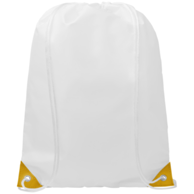 Drawstring backpack with main compartment with drawstring closure in white colour. Features coloured reinforced corners. Resistance up to 5 kg weight.