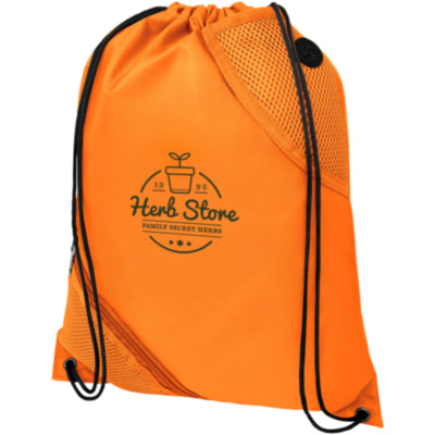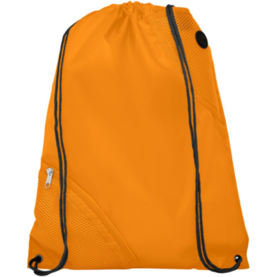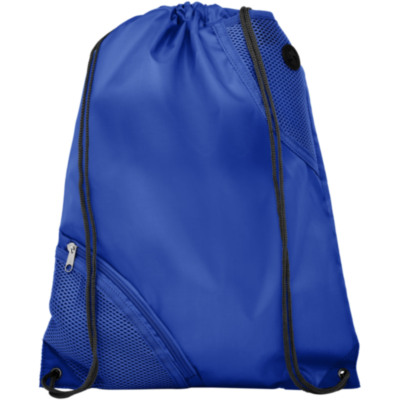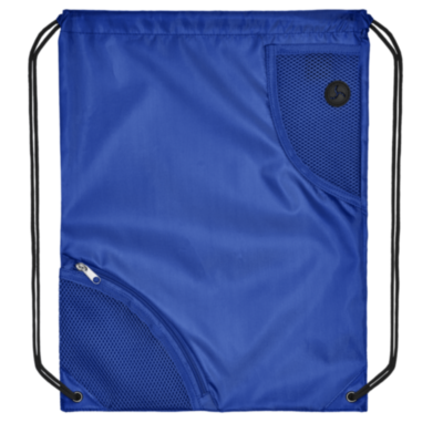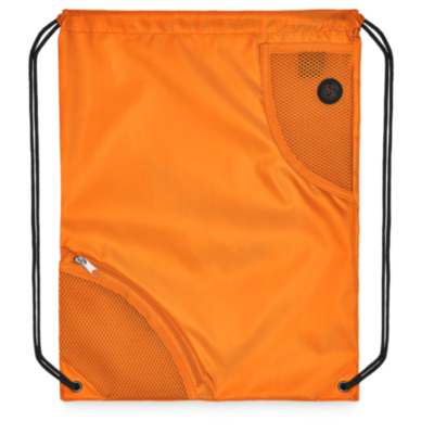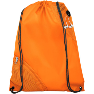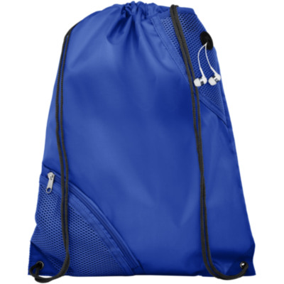 Drawstring backpack with main compartment with drawstring closure in matching colour. Features 2 small mesh front pockets (1 zippered and 1 velcro closure) and an earbud port. Resistance up to 5 kg weight.
