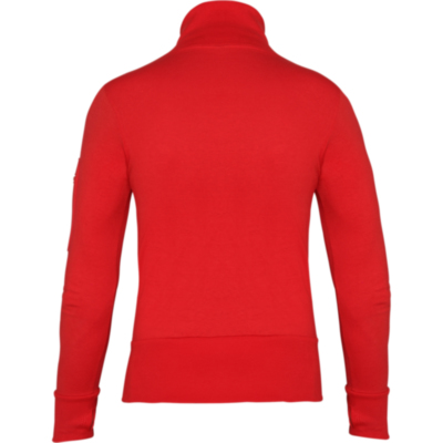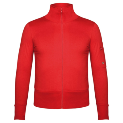 Casual turtleneck jacket with matching front zip. Ribbed collar, cuffs and wide waistband. Pocket on top of sleeve with zip and eyelet for mobile devices. Reinforced covered seams on inner collar. Selvedge side seams and thumb hole in cuffs.