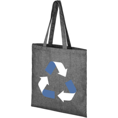 Tote made of 150 g/m² recycled cotton polyester blend with a dropdown handle length of 31 cm. Recycled cotton is manufactured from pre-consumer waste generated by textile factories during the cutting process. Similar colours are blended together so no additional dyeing is required. Due to the nature of recycled cotton, there may be a very slight colour variation. This feature distinctly adds to a more authentic appearance.This bag folds easily to fit in a small space. The perfect companion for a variety of activities like grocery shopping, day trips or craft projects.