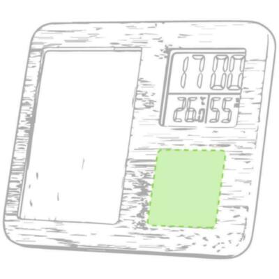 Nature line photo frame made in polished bamboo, with integrated weather station and functions thermometer, hygrometer and clock. Suitable for 9x14cm photos and with battery operated clock (button cells included). Presented in an attractive eco design box. Availan instruction manual in English and Spanish.