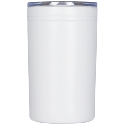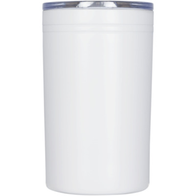 Double-wall construction, vacuum insulated. Clear, press-on lid with slide closure. Works as a tumbler or drink insulator. Volume capacity is 330 ml.