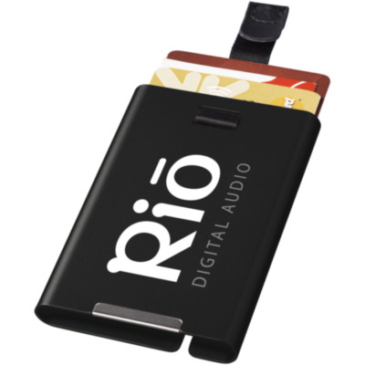 Aluminum card holder protects your cards from identity theft, breaking and damage. Simply take out the cards using the cord. Holds up to 9 cards. Presented in a gift box.