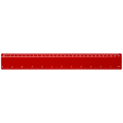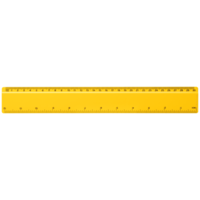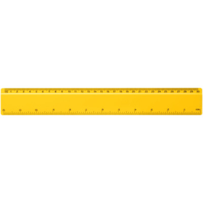 Solid recycled plastic ruler with markings available in both inches and centimetres.