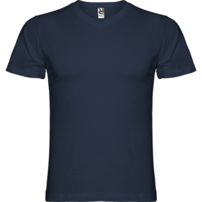Tubular short-sleeve t-shirt with 2-layer v-neck. Reinforced covered seams in collar and shoulders.