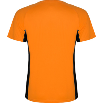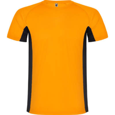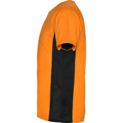 Technical t-shirt with a combination of two polyester fabrics and short-sleeve raglan style. Main fabric in birds's eye, side panels and inner sleeve in microperforated fabric. Crew neck with inner reinforced covered seams. Comfortable and easy-fitting fabric.