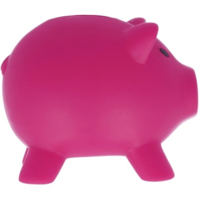 Piggy bank in PVC with ABS stopper on the bottom.