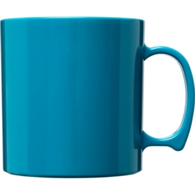 Durable, single-wall plastic mug. Volume capacity is 300 ml. Made in the UK.