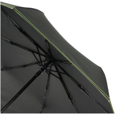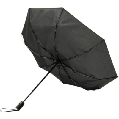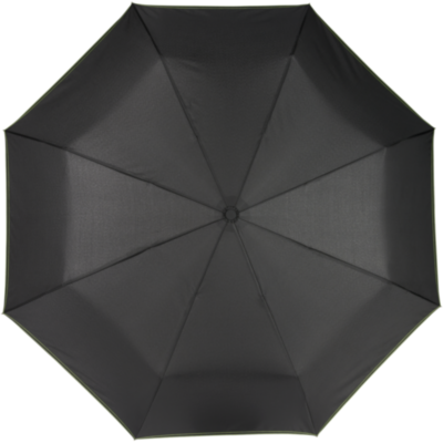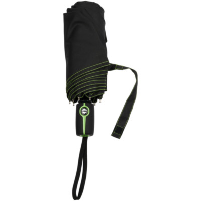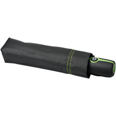 Automatic open and close foldable umbrella with a pongee polyester canopy. Sturdy metal shaft, a high quality frame with fibreglass ribs that offers maximum flexibility in windy conditions. Supplied with a pouch and can easily fit in a handbag or backpack for convenient carrying. Coloured details are available on the soft touch handle and detailed sewing on the canopy and pouch. Large decoration area on each of the panels, as well as the handle.