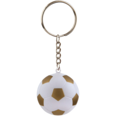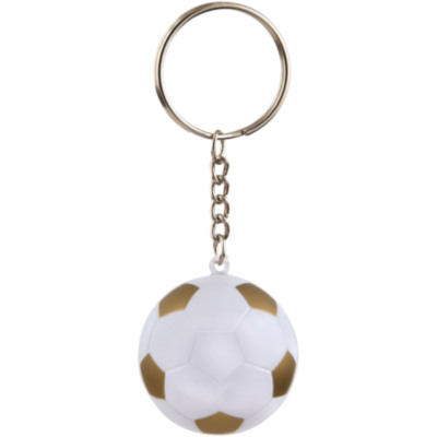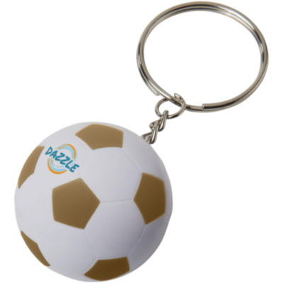 Striker football key chain. Stress relievers vary slightly in density, colour, size and weight due to the moulding process which may prevent precise and uniform imprint. Imprint may break up. No half-tones.