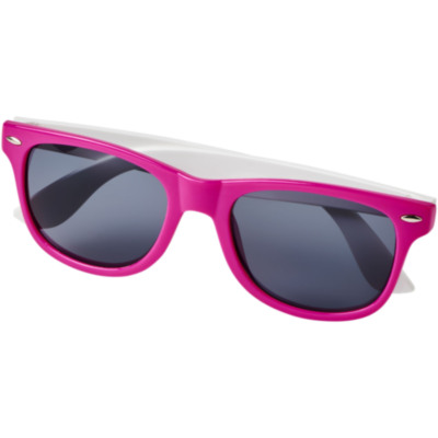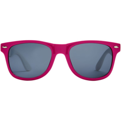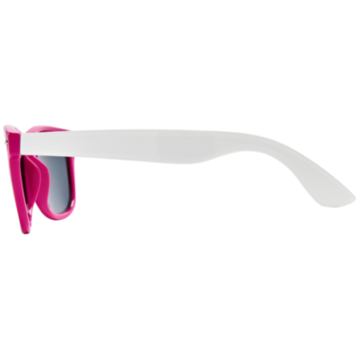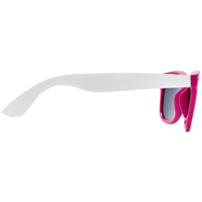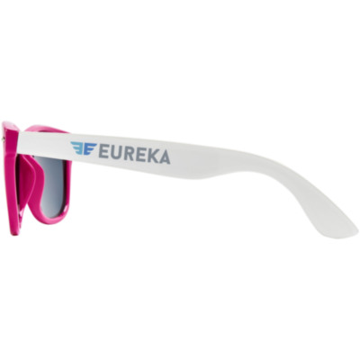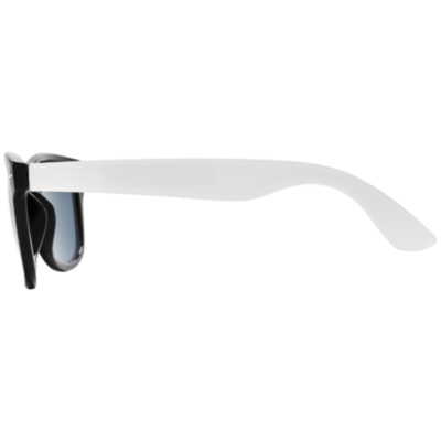 Sun Ray retro design sunglasses with white temples for large decoration options. Compliant with EN ISO 12312-1 and UV 400, lenses are graded as category 3.