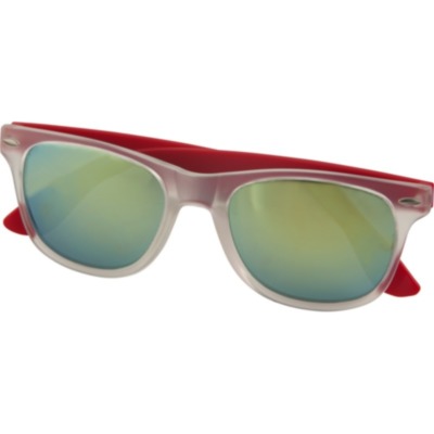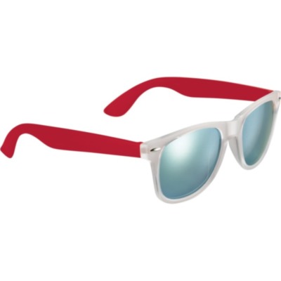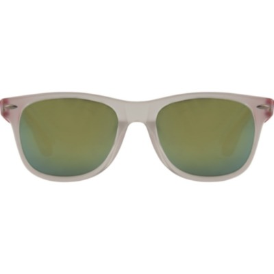 Retro design sunglasses with frosted white frame, category 3 mirrored lenses in 3 different tones and colour-tone matching temples. Compliant with EN ISO 12312-1 and UV400.