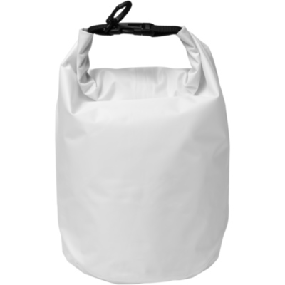 A waterproof bag great for the outdoors. The roll-top closure with plastic buckle ensures valuables are kept dry and safe. Easily attached to a bag or belt. When rolled down and buckled, content capacity is 5 liters.
