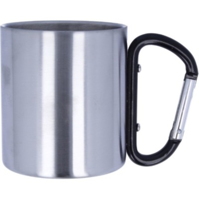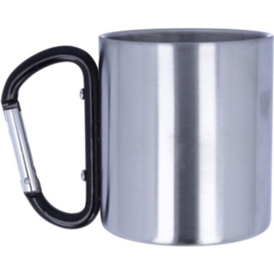 Double wall stainless steel mug, with carabiner handle. Capacity: 220 ml.