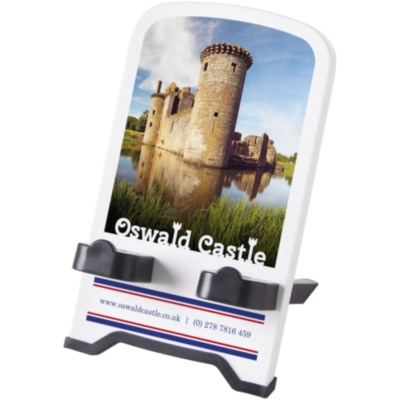 An essential desk accessory, this phone stand is ideal for anybody working from home. This handy item will keep the phone close by at all times, ready for video calls, watching videos or simply catching up on social media. The white backboard is manufactured from recycled plastic, and the stand is designed to enable charging the device whilst it’s on the stand. Supplied flatpacked in a gift box, with a low profile making it ideal for mailing. Made in the UK.