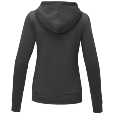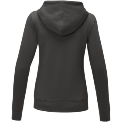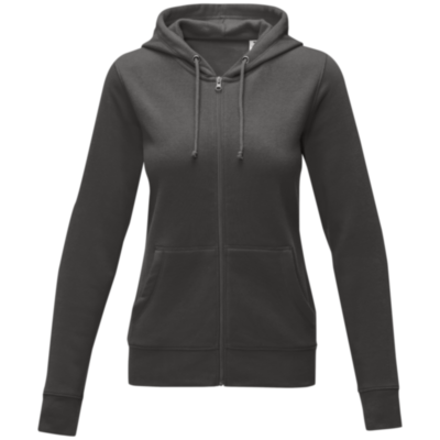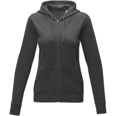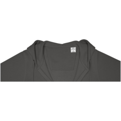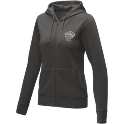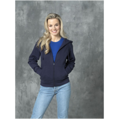 The Theron women's full zip hoodie – where style meets comfort in perfect harmony. This hoodie is a true embodiment of classic design. Additionally, the interior custom branding options allow personalised branding or customisation inside the hoodie. A kangaroo pocket combines convenience with a modern aesthetic. The flat knit rib bottom hem and cuffs guarantee a secure fit, while the brushed interior maximizes softness. The 240 g/m² fabric, blend of cotton and polyester, promises warmth and durability. Elevate your wardrobe with the Theron full zip hoodie. This hoodie is designed with a fitted shape for a feminine look.