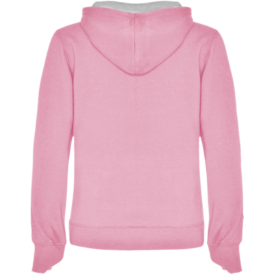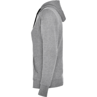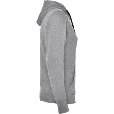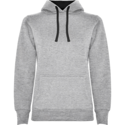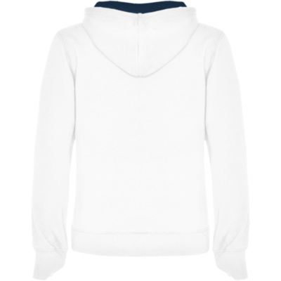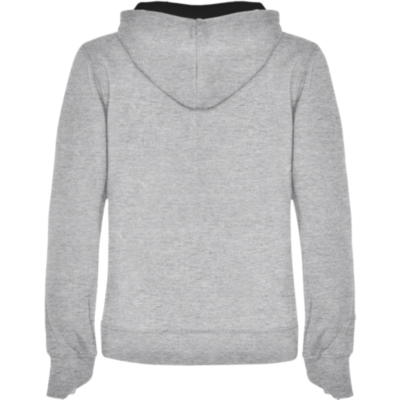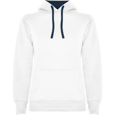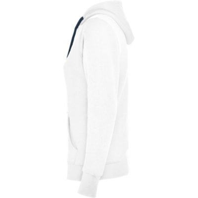 Fitted-cut sweatshirt with two-colour hood in double fabric, contrasting adjustable drawcord, reinforced seams in collar and kangaroo pocket. 1x1 elastane rib in cuffs and waist. Thumb-slit detail. Ribbed cuff with thumb hole.