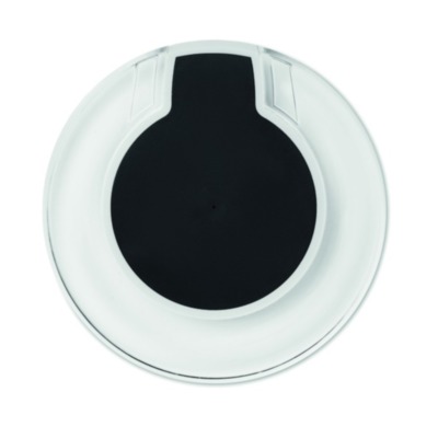 Wireless charger. Connect device to your computer, lay down smartphone on it and let it charge. Blue light when charging. Output: DC5V/1A (5W). Compatible latest androids, iPhone® 8, X and newer.
