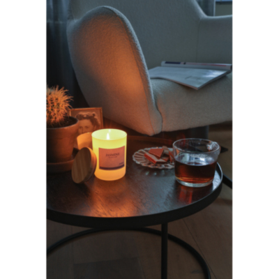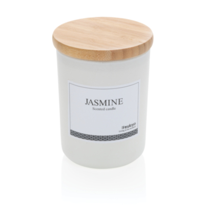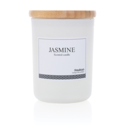 Create warmth and cosiness in your home with this Ukiyo scented candle. Enjoy the subtle jasmin scent that is released. The scented candle comes in an elegant jar with bamboo lid.