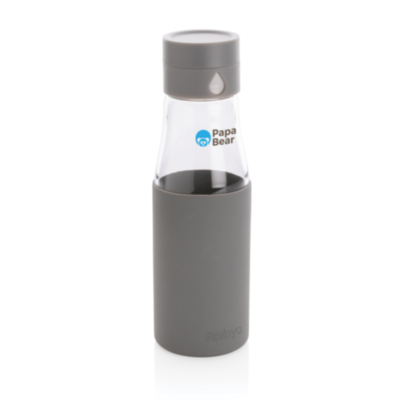 Track your daily hydration goals with this cleverly designed Ukiyo borosilicate glass 600ml water bottle. The lid displays a bigger water drop each time you refill and twist the collar so you can easily keep count of the number of bottles you drink. The body is dishwasher safe. Leakproof. Registered design®