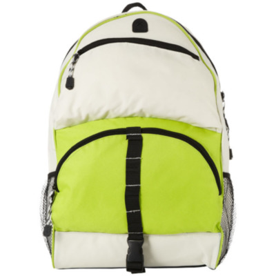 Backpack with padded shoulder straps, 2 mesh side pockets, detachable phone pouch, zipper front pocket for MP3/MP4 player and several small hooks for keys and an ear bud opening.