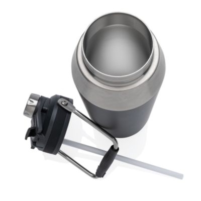 The ultimate stainless steel bottle for on-the-go versatility. The lid has a dual function that has both a flip top straw and screw cap so you can choose how you want to drink from the bottle! The bottles features a top handle for easy carrying. Double wall vacuum insulated stainless steel keeps beverages hot for up to 5 hours or cold for up to 15 hours. A powder coat finish creates a highly durable exterior. Capacity 1000ml. BPA free.